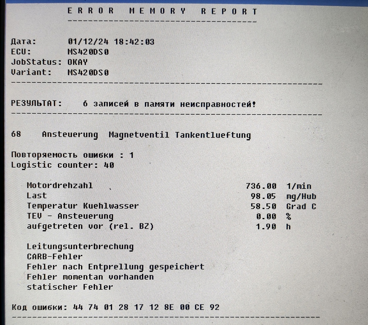 Комментарий к файлу: Ошибка 68. Клапан Сброса Давления Бака