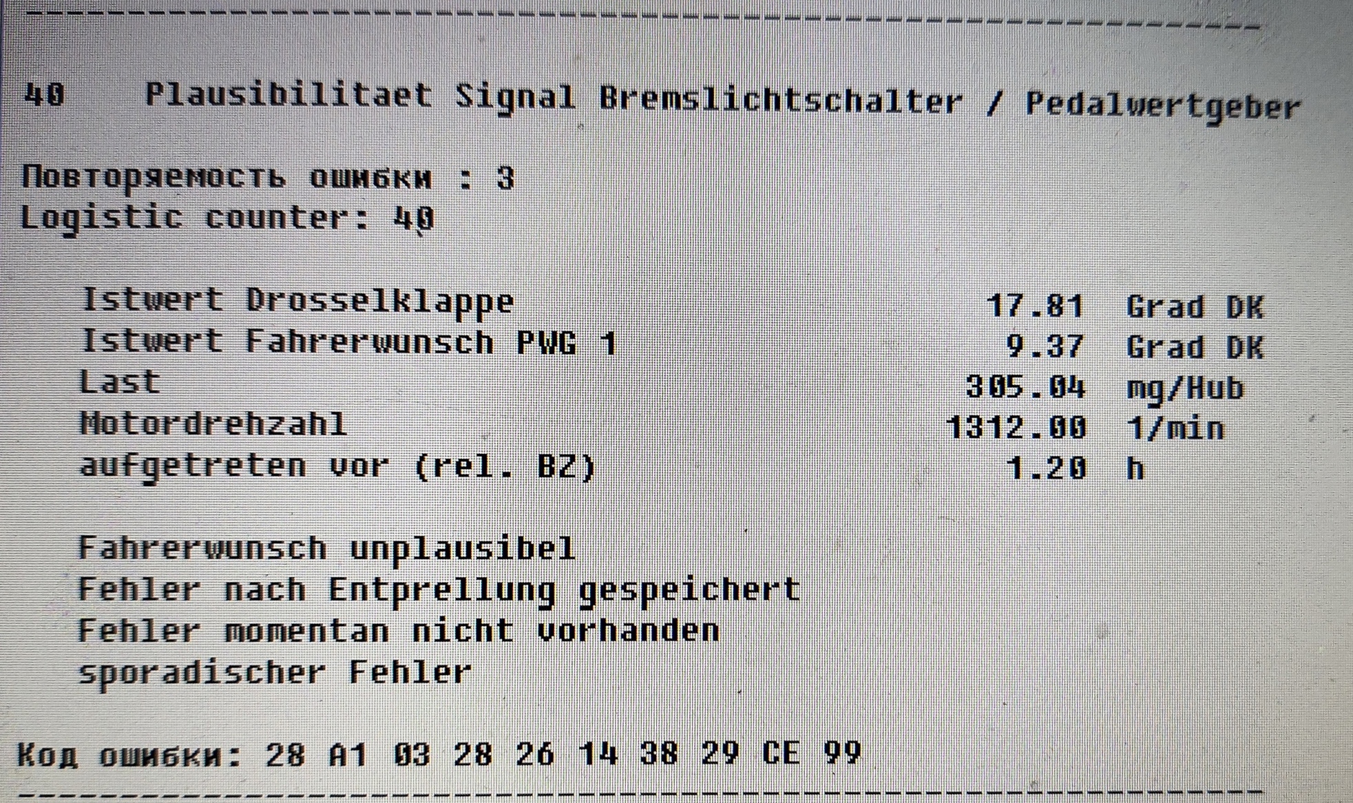 Комментарий к файлу: Ошибка 40. выключатель стоп-сигнала или сигнал значения педали
