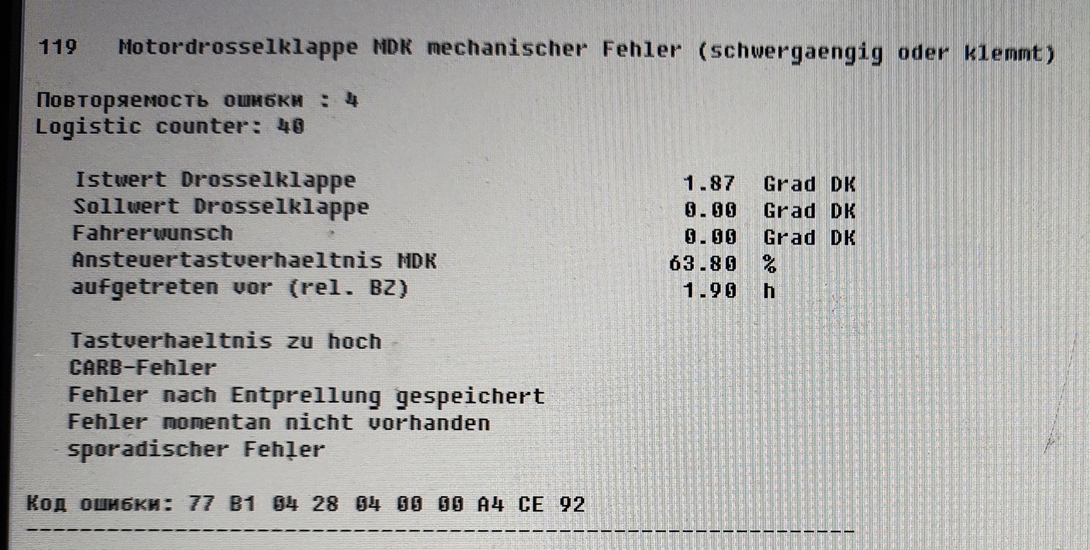 Комментарий к файлу: Ошибка 119. датчик дроссельной заслонки-механическая погрешность или TPS2 / правдоподобие воздушного потока (MS43)