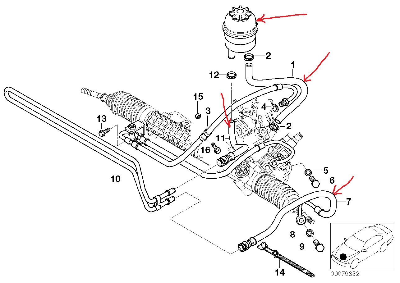 Icar : andrewky Заменить можно только шланг №1 на картинке. Узел 32.0958. Маслопроводы гидроусилителя рул.управл. Если ты про №11, то его могут сделать в гидромастерских. Почитай еще раз пост №3. Насколько я понял, как заменитель шланга 11 подходит именно универсальный шланг gates с внутренним диаметром 14мм. Просто он с двух сторон зажимается хомутами (был быстросъем, стал хомут). : "Лично для меня загадка, для чего BMW AG применило такой тип шлангов, когда исторически Contitech и Gates производят отличные маслостойкие мягкие резиновые шланги. Кстати такой шланг применяется и в Е46, шланг от бачка ГУР до насоса ГУР."