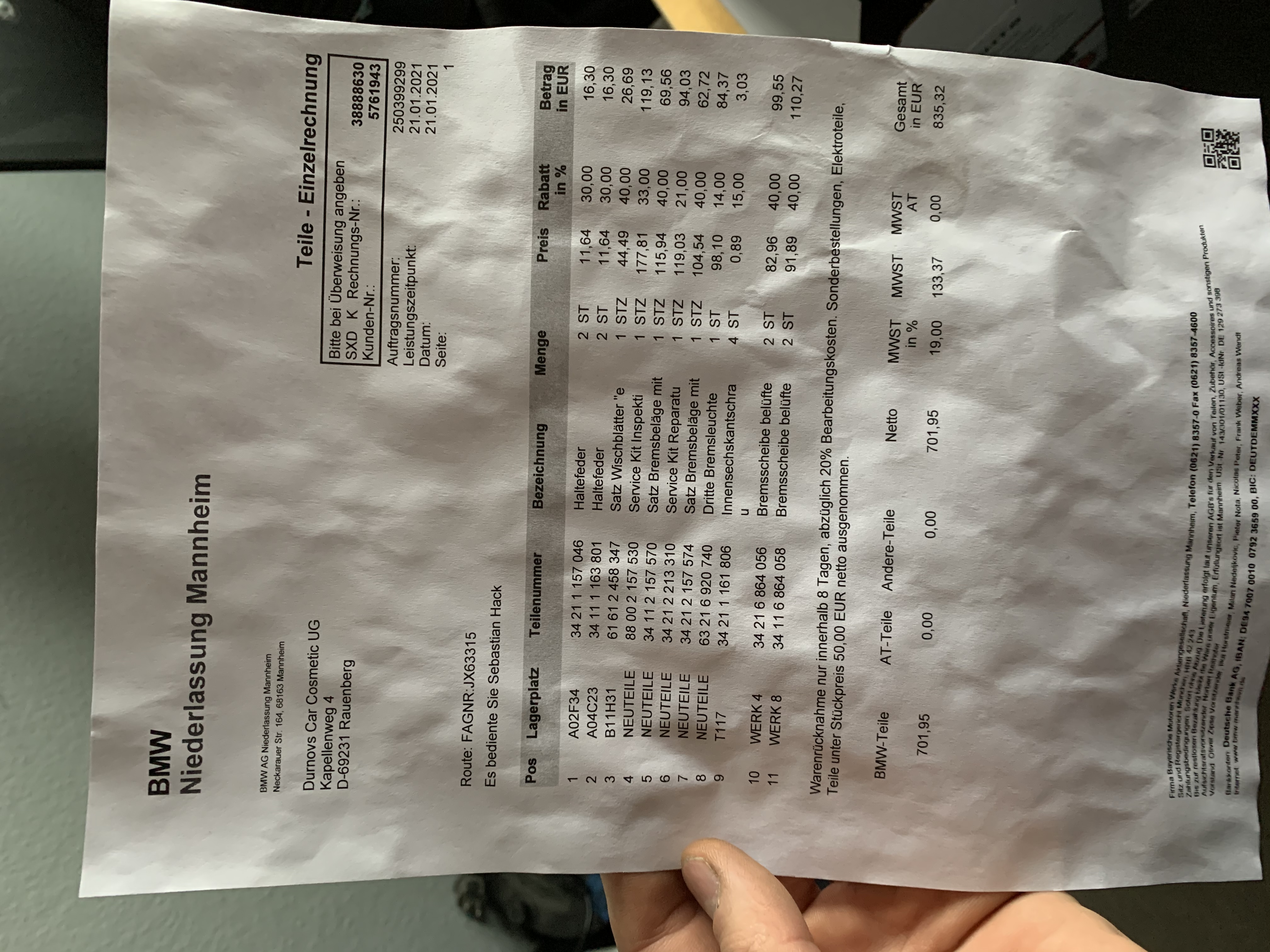 Какой же дорогой в обслуживании BMW. Немцы шутят BMW( Bringt Mir Werkzeug).Закупленных детали для Т.О. Пришла пора обслужить тормоза.
