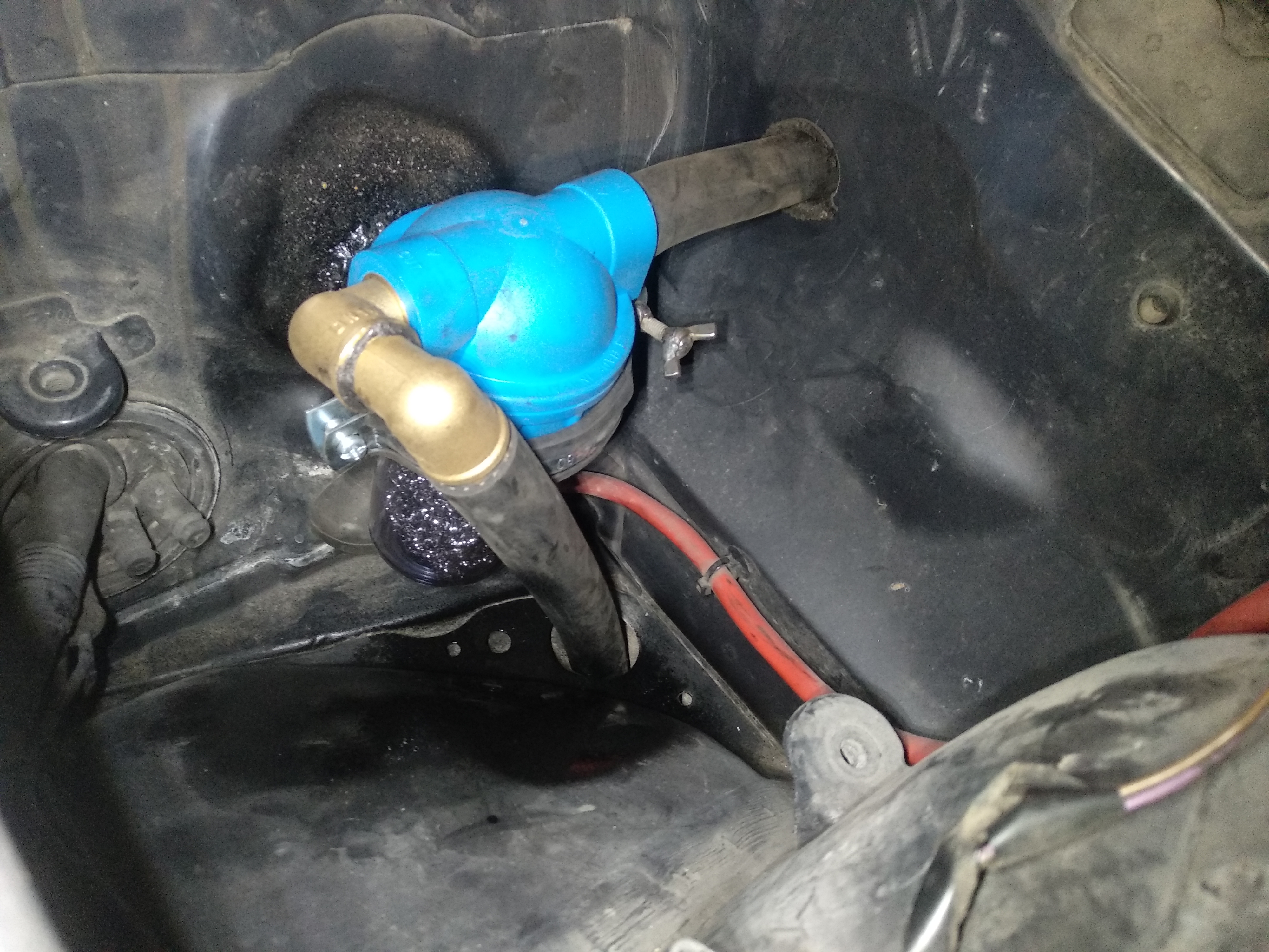 Для датчика давления масла выкрутил болт идущий на ванос,в нем отверстие,метчиком резьбу,датчик на клей. Ок Температуру двигуна взял с блока,рядом с ориг датчиком температуры(под впуском,сзади) просверлил сквозное,метчиком резьбу,на клей. Ок Поменял все патрубки,Дису,ДМРВ (Сдох падла сам по себе за две недели воляния на стеллаже..стекла целые,реакции на подключение ноль.) Промыл дросельку,клапан хх. Выкинул всю систему КВКГ,поставил масло помойку. сделал из водяного фильтра,напихал мачалок железных,тольстым шлангом завел в нишу где обычно у кострированных двигателей стоит акб.