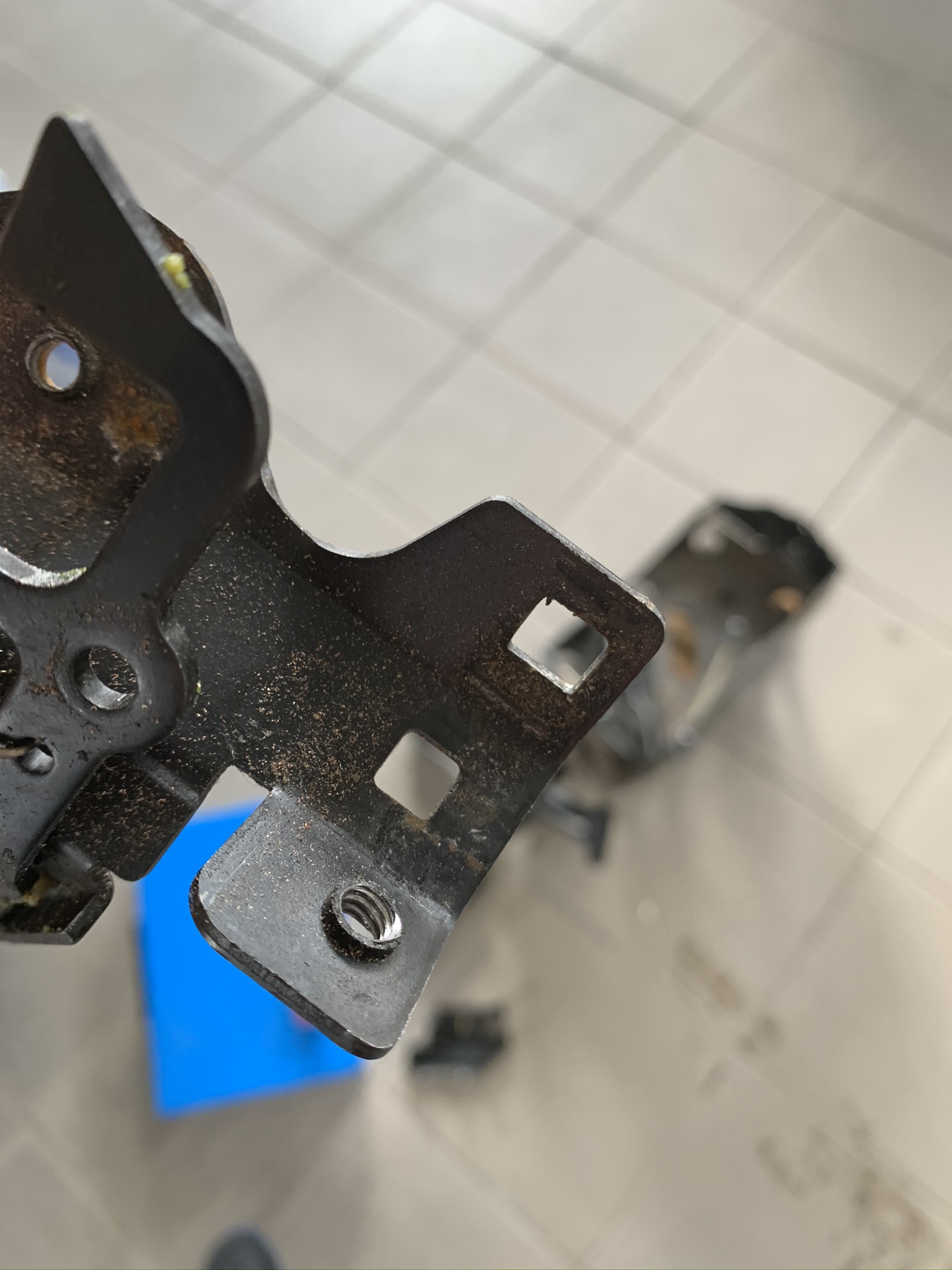На старом замке нарезана резьба под болты на новом Инженеры BMW посчитали что владелец должен приобщится к производству автомобиля легендарной марки и с радостью сам нарежет резьбу. Как позже выяснится не только рьзьбу нужно уметь нарезать но и обладать недюжим Инженерным талантом.